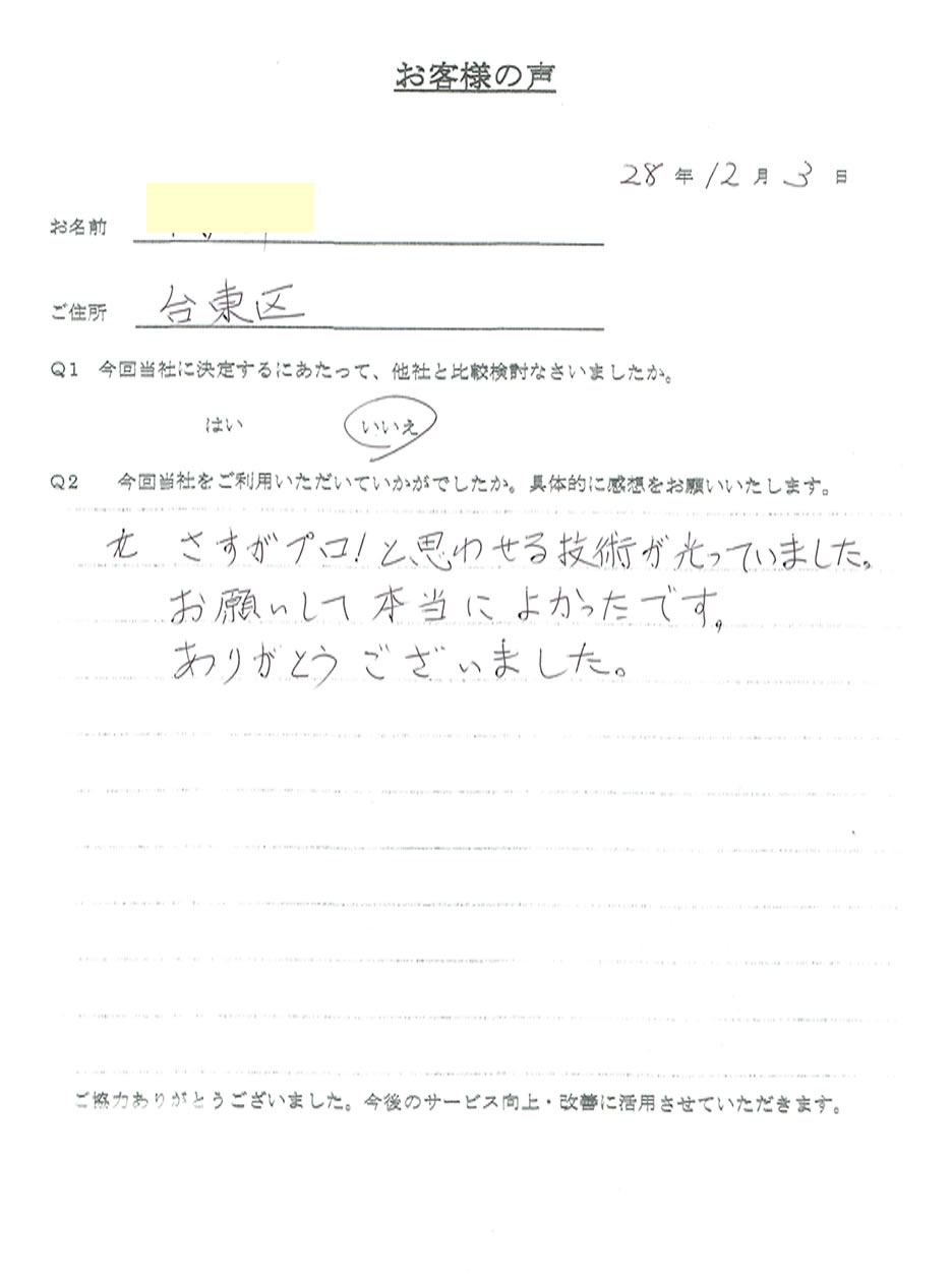 クイックをご利用いただきましたお客様より、お声をいただきました。ご協力、本当にありがとうございました。